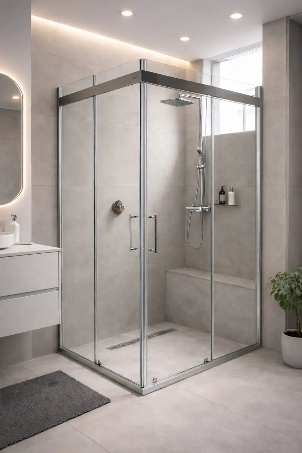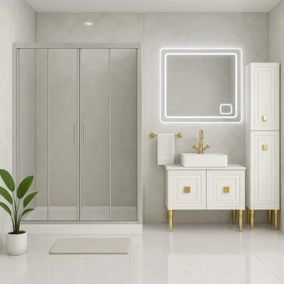 • Kapı Tipi ve Mekanizma: Sürgülü kapılar küçük banyolar için alan tasarrufu sağlarken idealdir. Menteşeli kapılar geniş bir giriş alanı sunar ve daha ferah bir his verir. Katlanır kapılar ise hem alan tasarrufu hem de geniş giriş esnekliği sunar. Rulmanların ve menteşelerin kalitesi, kapıların kullanım ömrünü ve sorunsuzluğunu doğrudan etkiler.